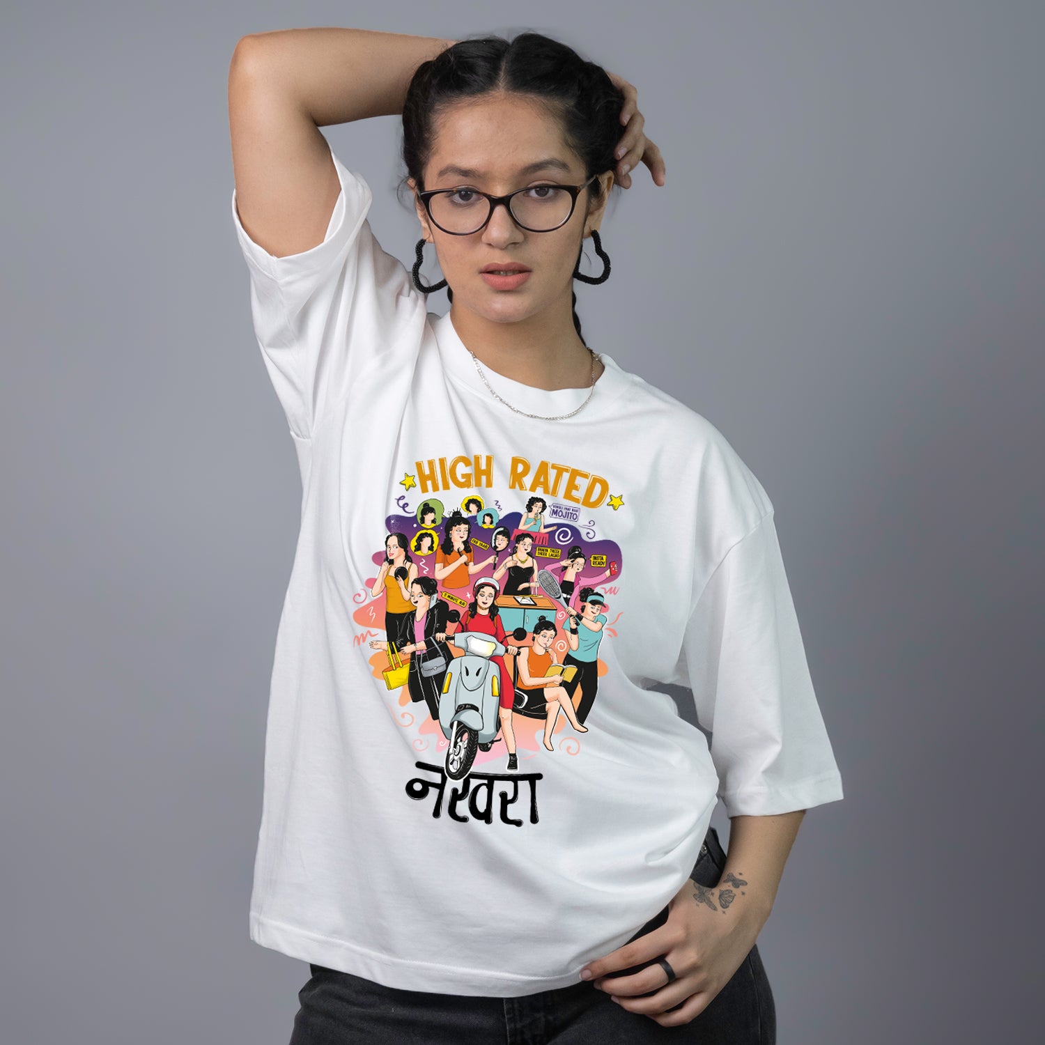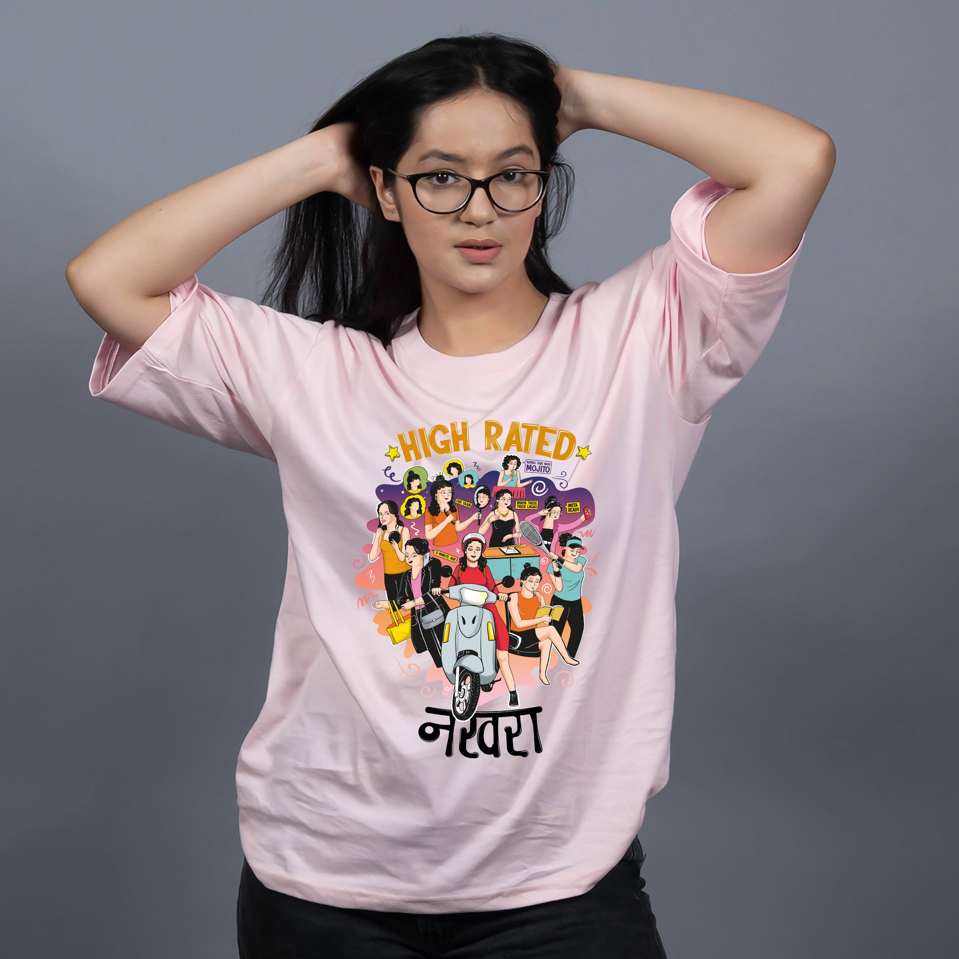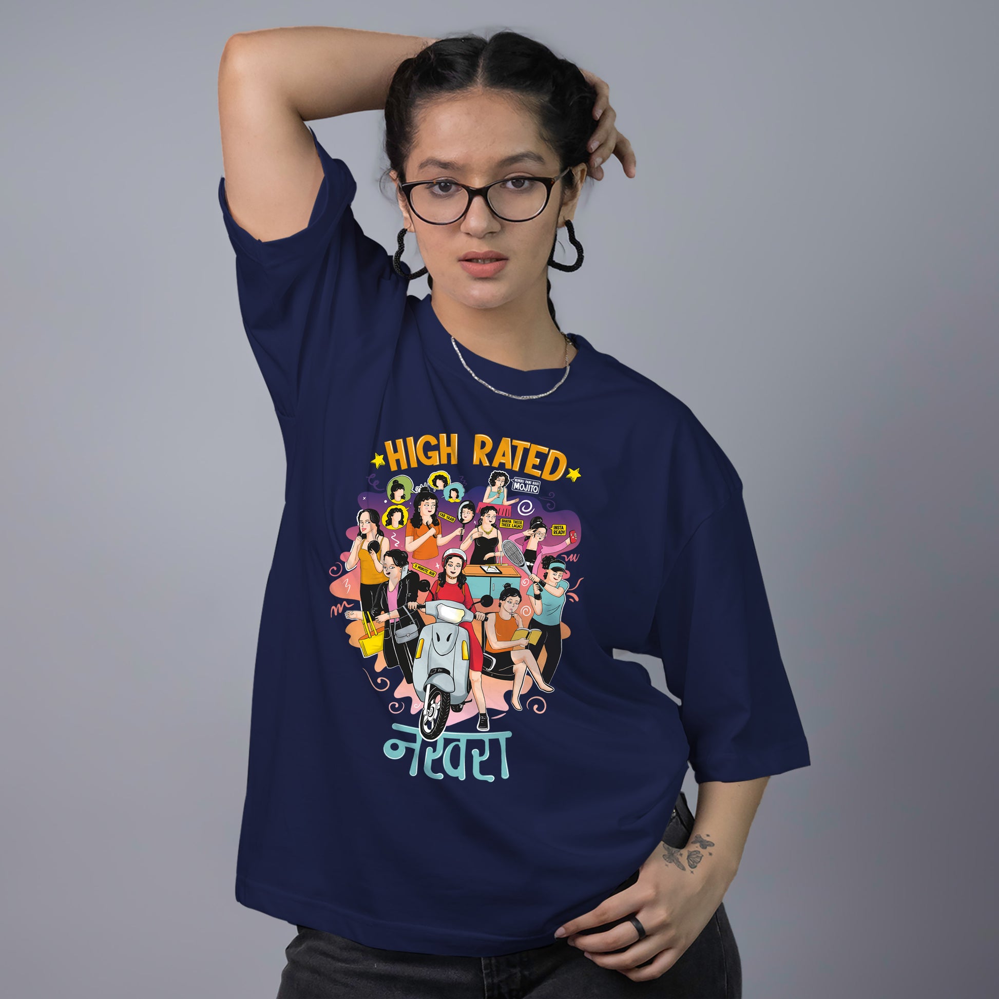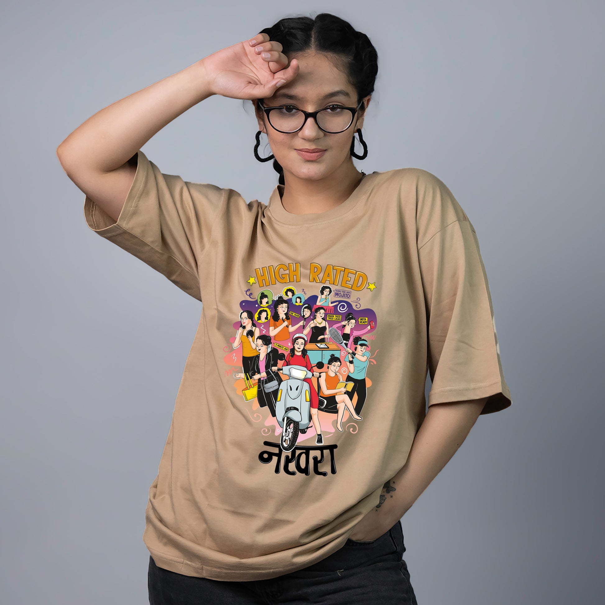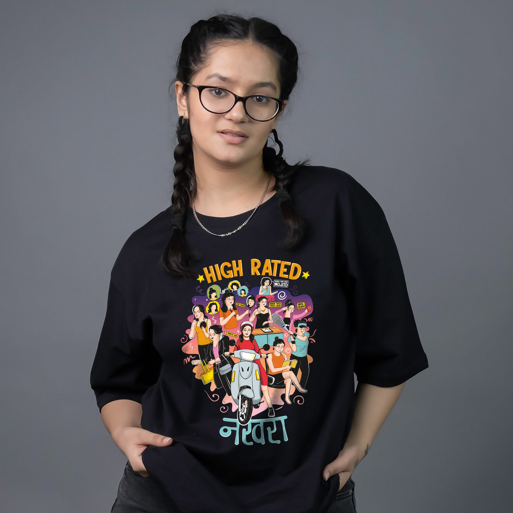Embrace your desi girl swag with our "High Rated Nakhra" cool graphic t-shirt, meticulously designed to celebrate the vibrant nuances of Indian girlhood. Crafted from 100% ring spun cotton, this t-shirt offers a perfect blend of style, comfort, and durability.
