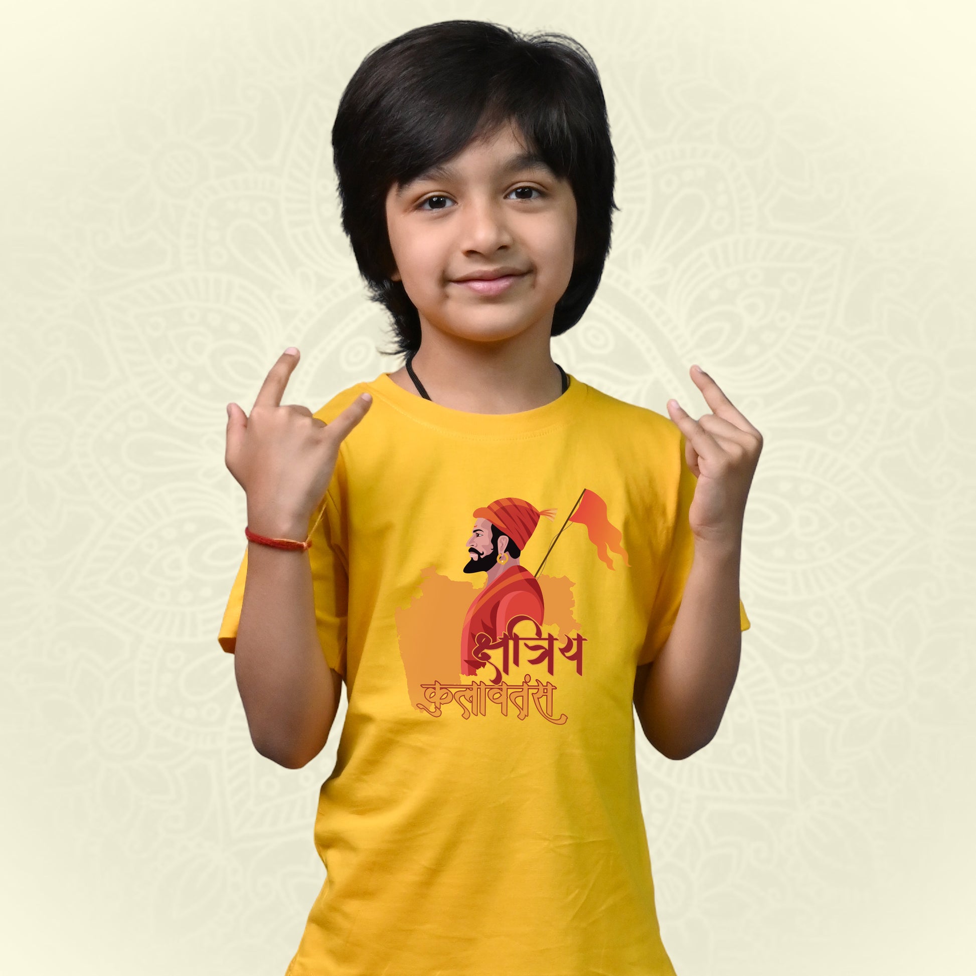 The Shivaji Kids Half Sleeve T-Shirt is inspired by the spirit of bravery and leadership, designed to be gentle on kids’ skin while strong on comfort. Made with 100% Super Combed Cotton, it keeps little ones cool, and happy all day long.